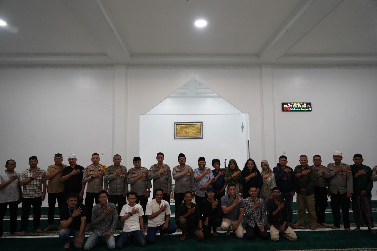 KUBU RAYA – Kapolres Kubu Raya, AKBP Wahyu Jati Wibowo, menghadiri kegiatan buka puasa bersama insan pers sebagai wujud komitmen Polri dalam menjalin hubungan harmonis dengan media. Acara ini berlangsung di Masjid Baitul Mukmin Polres Kubu Raya pada Kamis (13/3) pukul 16.30 WIB dan digelar serentak secara virtual di seluruh Indonesia, dipimpin oleh Wakapolri, Komjen Pol Dr. Ahmad Dofiri serta dihadiri Ustadz Das’ad Latief, S.Sos., S.Ag., M.Si., Ph.D.