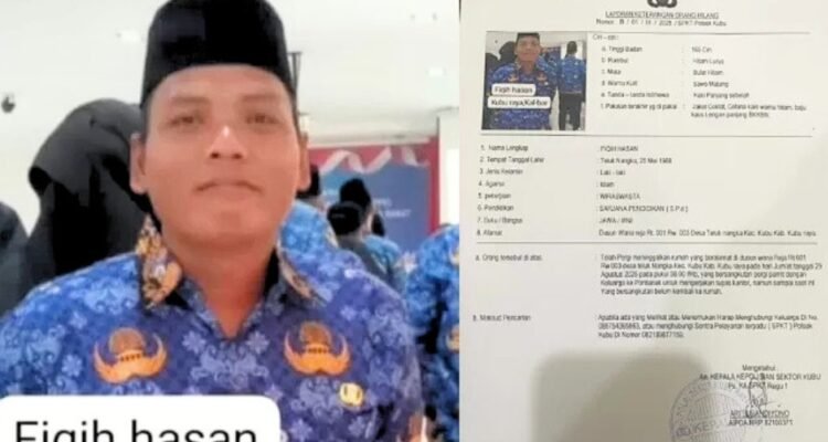 Polisi Masih Selidiki Hilangnya PNS Kubu Raya Fiqi Hasan, Hilang Tanpa Jejak BERITA|September 15, 2025oleh PONTIANAK MEDIA Seorang Pegawai Negeri Sipil (PNS) bernama Fiqi Hasan (37), warga Dusun Wana