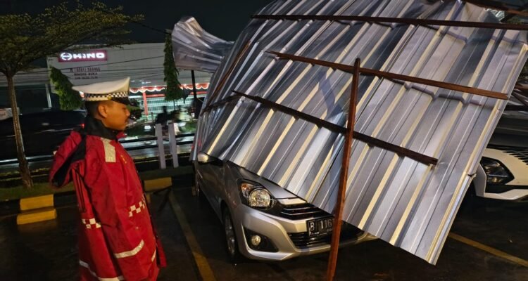 Angin Kencang Terbangkan Atap Seng, Tiga Mobil Tertimpa di Parkiran Pizza Hut Kubu Raya BERITA, KEPOLISIAN, PERISTIWA|Agustus 4, 2025oleh PONTIANAK MEDIA KUBU RAYA – Hujan deras disertai angin kencang di kawasan Sungai Raya,