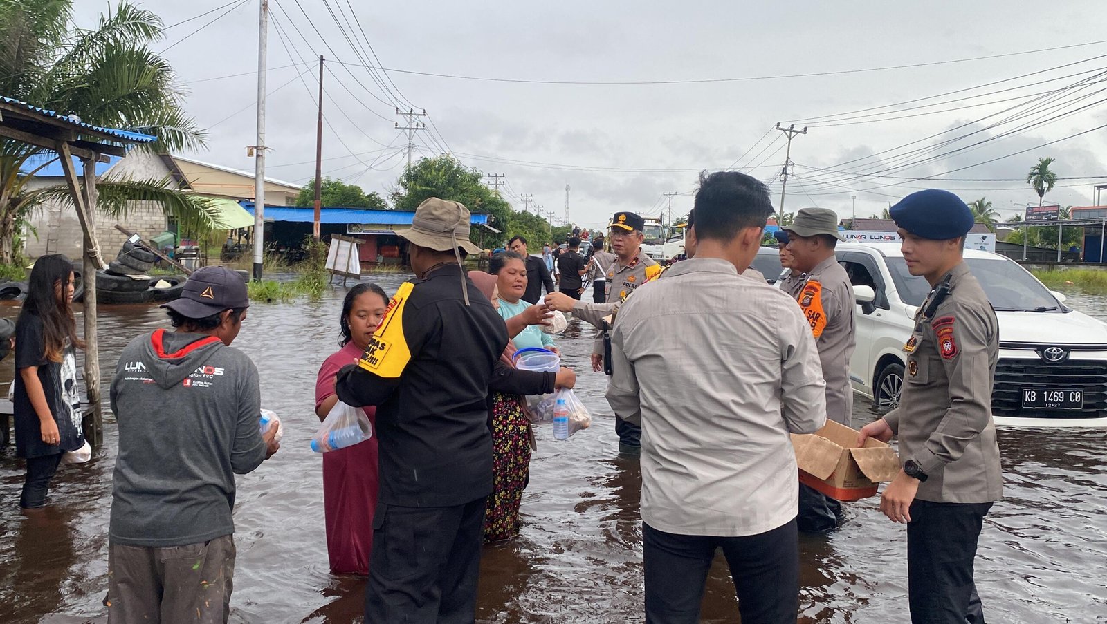 Beberapa minggu terakhir ini beberapa kota dan kabupaten di Provinsi Kalbar tengah dilanda bencana alam banjir dan salah satu kabupaten yang terendam banjir ini adalah Kabupaten Mempawah. Dalam rangka meringankan beban masyarakat yang menjadi korban bencana alam banjir ini Kapolda Kalbar Irjen Pol. Pipit Rismanto, S.I.K., M.H. bersama Wakapolda Kalbar Brigjen Pol. Roma Hutajulu, S.I.K., M.Si., didampingi Dansatbrimob Polda Kalbar Kbp Irwan Jaya, S.I.K. dan pejabat utama Polda Kalbar lainnya turun langsung untuk memberikan bantuan berupa sembako kepada masyarakat serta personel Polda Kalbar yang berdinas di Polres Mempawah yang menjadi korban dari bencana alam banjir yang tengah melanda Kabupaten Mempawah. Hadirnya Kapolda Kalbar dan para pejabat utama Polda Kalbar di lokasi bencana alam banjir ini selain untuk memberikan bantuan juga merupakan bentuk nyata hadirnya Polri ditengah-tengah masyarakat serta bentuk nyata dari perhatian pimpinan Polri kepada personelnya yang tengah dilanda musibah bencana alam. Selain memberikan bantuan berupa sembako disini Kapolda Kalbar juga memerintakan kepada personelnya untuk membantu siapa saja yang membutuhkan bantuan mereka seperti contohnya membantu masyarakat yang ingin mengungsi tempat pengungsian atau ketempat yang lebih aman dan membantu masyarakat pengguna jalan untuk melintasi jalanan yang terendam banjir. Pada pelaksanaan kegiatan ini Dansatbrimob Polda Kalbar juga memerintahkan kepada personel Satbrimob Polda Kalbar yang berada dilokasi untuk membantu satuan kewilayahan mengevakuasi masyarakat menuju ketempat yang lebih aman serta memerintahkan mereka untuk melakukan patroli dan membantu pemerintah daerah serta Polri untuk menyalurkan bantuan menggunakan perahu karet kebeberapa desa yang sulit untuk diakses kendaraan di Kabupaten Mempawah yang terendam banjir.