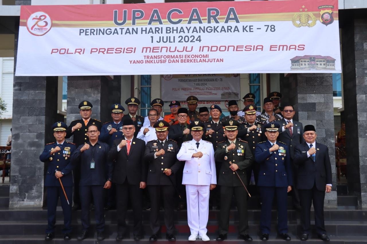 Polres Kubu Raya menyelenggarakan Upacara Hari Bhayangkara ke-78 di Lapangan Kantor Bupati Kabupaten Kubu Raya. Upacara ini dipimpin langsung oleh Kapolres Kubu Raya, AKBP Wahyu Jati Wibowo, S.I.K., S.H., M.H., dan dihadiri oleh Pj. Bupati Kubu Raya, Dr. Syarif Kamaruzaman, M.Si., Dandim 1207/Pontianak, Kolonel ARM. Irwansyah, S.A.P., M.H., Kadispers Lanud Supadio Letkol ADM. Eko Septiawan, S.E., M.I.Pol., Ketua DPRD Kab. Kubu Raya, H. Agus Sudarmansyah, S.IPem., M.Si., Sekretaris Daerah Kab. Kubu Raya, Yusran Anizam, S.Sos., M.Si., Danyon A Pelopor Satbrimob Polda Kalbar, Kompol Jon Rubi Sugiarto, S.A.P., Kepala BNN Kubu Raya, Drs. M. Eka Suryana Agus, M.A.P., Ketua Bhayangkari Cabang Kubu Raya, Ny. Thia Wahyu, Kasi Operasi dan Siaga Kantor SAR Pontianak, Eryk Subarianto, S.T., Kasat Pol PP Kab. Kubu Raya, Rasudi, S.Sos., M.Si., Kepala Pelaksana BPBD Kab. Kubu Raya, Drs. Herry Purwoko, M.Si., Ketua KPU Kab. Kubu Raya, Kasino, S.Pd., Ketua Bawaslu Kab. Kubu Raya, Encep Endan, Camat Sungai Raya Drs. M. Ikhsan Sukendar, M.Si., Camat Sungai Ambawang, Jurin, S.E., Pimpinan Perusahaan di Kab. Kubu Raya, serta sejumlah pejabat dan tokoh masyarakat lainnya.