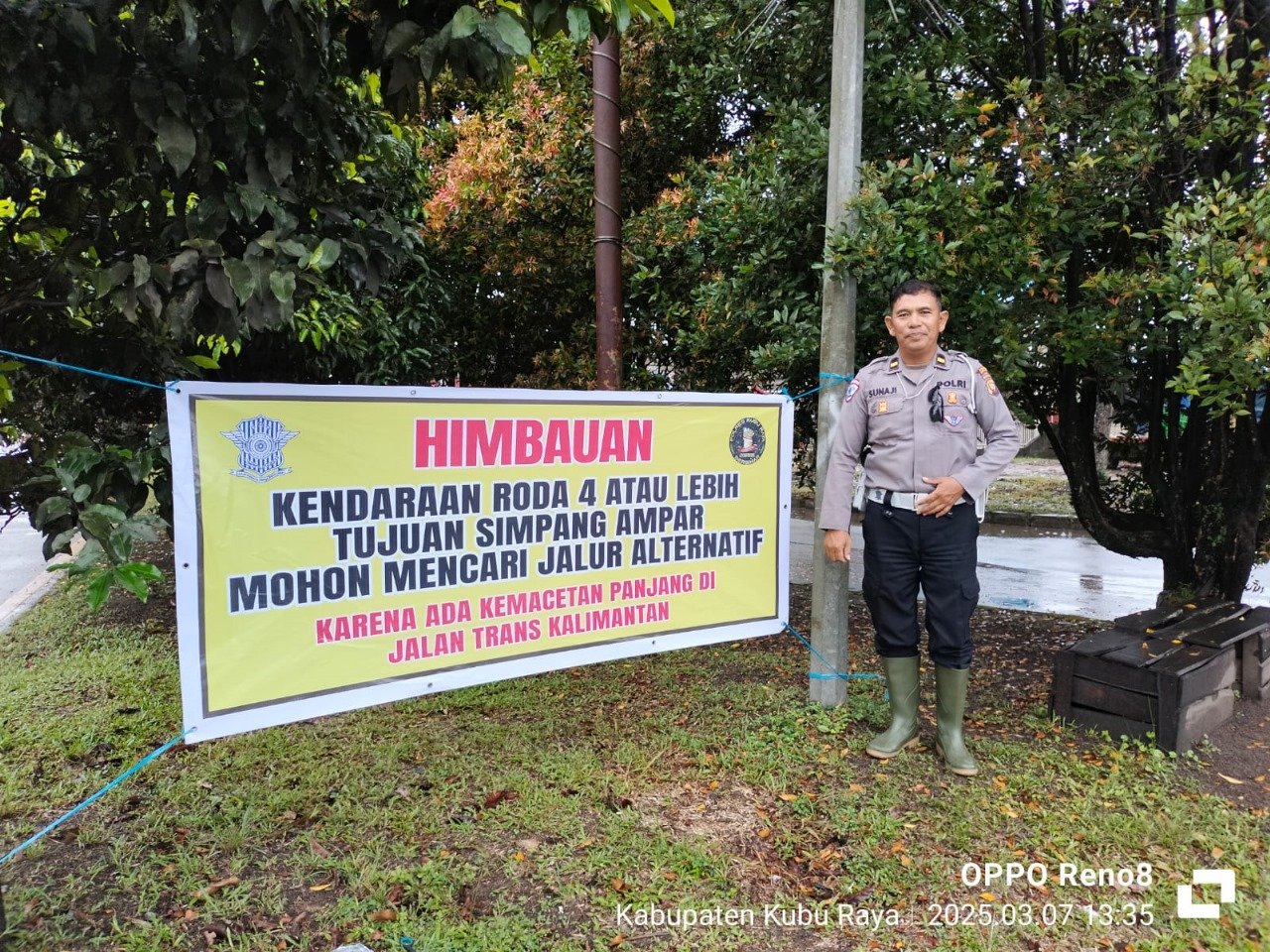 Menurutnya, genangan air di ruas jalan tersebut bukan hanya menghambat arus lalu lintas, tetapi juga mengganggu aktivitas masyarakat dan kendaraan yang melintas, termasuk kendaraan angkutan logistik. Mengingat Jalan Trans Kalimantan merupakan jalur lintas provinsi, kabupaten, hingga lintas negara, petugas kepolisian Polres Kubu Raya berupaya mengurangi dampak kemacetan dengan memberi arahan kepada pengendara untuk memilih jalur alternatif.