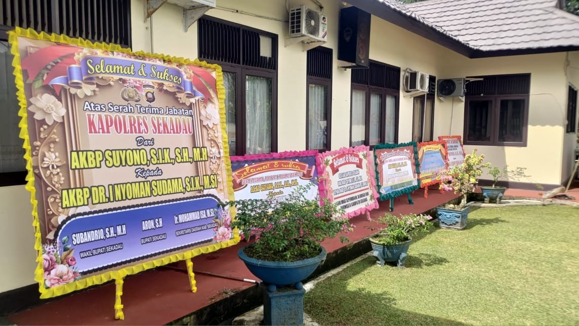 Jelang Pisah Sambut Kapolres, Spanduk Ucapan Selamat Hiasi Mapolres Sekadau