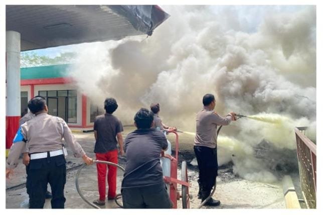 Kejadian ini terjadi pada siang hari sehingga menjadi perhatian kepanikan orang yang melintasi jalan dan warga setempat, akibat dengan kejadian tersebut satu unit mobil terbakar hangus dan plafon bagian ujung bangunan di SPBU sedikit terbakar, sopir sekaligus pemilik mobil Suzuki Carry KB 1497 AH mengalami luka bakar sehingga harus dilarikan di Puskesmas terdekat.