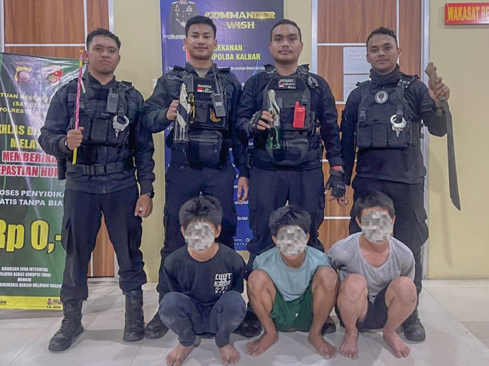 PONTIANAKMEDIA.ID, Pontianak_Polda Kalbar – Pada hari Sabtu dini hari sekitar pukul 02.00 WIB, Tim Enggang Polresta Pontianak yang diback up oleh Tim Enggang Polsek Pontianak Selatan berhasil mengamankan 3 (tiga) remaja Anak Berhadapan dengan Hukum (ABH) yang diduga akan melakukan aksi tawuran. Peristiwa tersebut terjadi di kawasan Jl. Veteran, Pontianak.