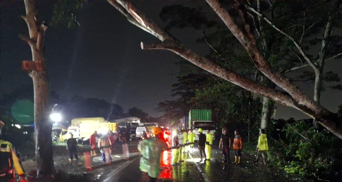 Polisi mengimbau masyarakat untuk selalu waspada terhadap perubahan cuaca ekstrem yang berpotensi menimbulkan bencana, terutama bagi pengendara yang melintas di jalan utama dengan pepohonan besar di sisi kiri-kanan.