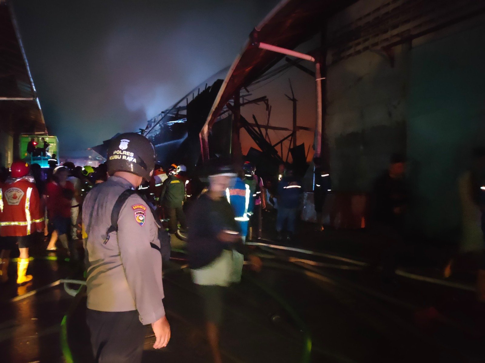 Ade menjelaskan, setelah dilakukan olah TKP dan pemeriksaan saksi oleh Tim Inafis Polres Kubu Raya dan Polsek Sungai Raya, api pertama kali muncul dari gudang terpal pada pukul 18.20 WIB.
