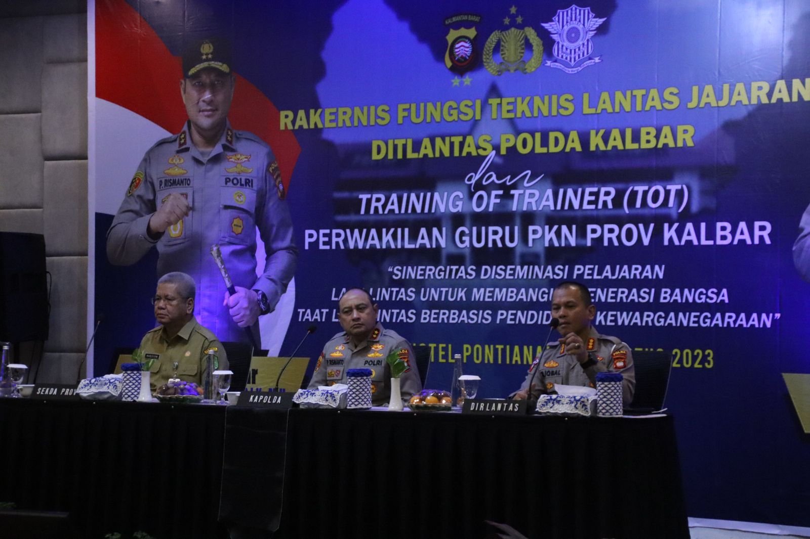PONTIANAK MEDIA.CO.ID, Pontianak – Kapolda Kalbar Irjen Pol Pipit Rismanto S.I.K., M.H., membuka secara resmi kegiatan Rakernis fungsi Lalu Lintas Jajaran Direktorat Lalu Lintas Polda Kalbar dan Training Of Trainer (TOT) Perwakilan Guru PKN Provinsi Kalbar, Senin (7/8).