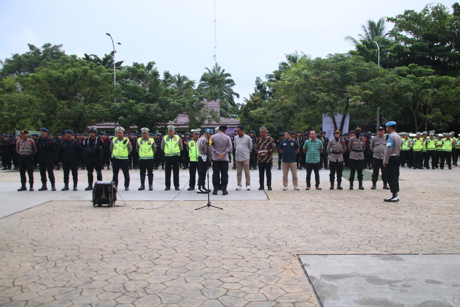 “Sebanyak 2000 an Personil dilapangan diturunkan untuk pengamanan di 3 lokasi yaitu Asrama Haji, Untan dan Hotel Kartika, yang keberadaan personil dilapangan tersebut untuk memberikan pelayanan dan meciptakan rasa aman selama kongres berlangsung”, jelas Kabidhumas.