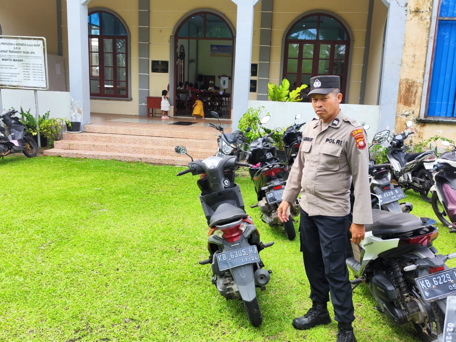 KUBU RAYA – Jajaran Polsek Rasau Jaya melakukan pengamanan kegiatan ibadah di sejumlah gereja yang berada di wilayah Kecamatan Rasau Jaya, Kabupaten Kubu Raya, pada Minggu (23/2) pagi.