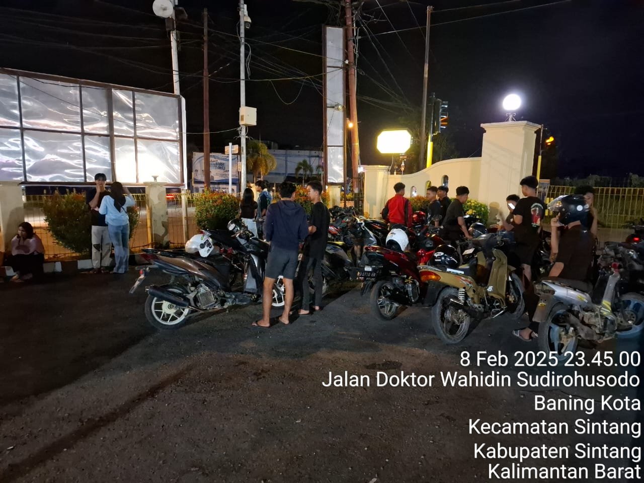 Sintang – Puluhan remaja yang menggunakan knalpot brong ditindak oleh pihak kepolisian dalam patroli di kawasan Jl. Dr. Wahidin, tepatnya di Simpang Polres Sintang, pada Sabtu (8/2) sekitar pukul 23.00 WIB.