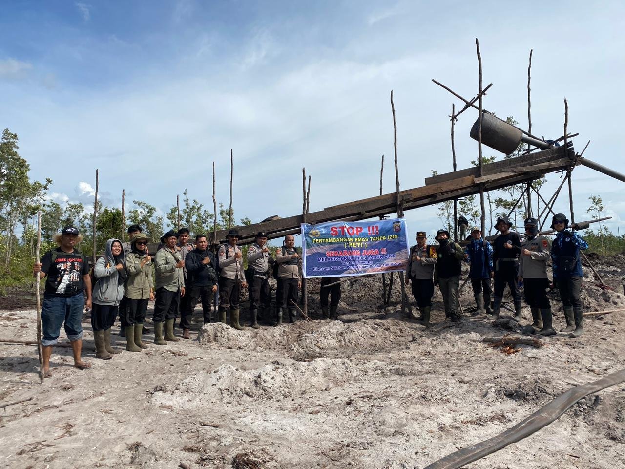 Menindak lanjuti informasi dari LPHD Wana Gambut Desa Sungai Pelang, Kapolres Ketapang langsung menurunkan tim Gabungan petugas Polres Ketapang bersama personel KPH (Kesatuan Pengendali Hutan) dan juga LPHD (Lembaga Penjaga Hutan Desa) Desa Sungai Pelang untuk turun menyasar lokasi Pertambangan Ilegal yang sudah merambah kawasan hutan desa sungai Pelang. Lokasi yang lahan gambut dan akses jalan yang belum memadai, petugas gabungan harus berjalan kaki menuju ke lokasi pertambangan tersebut.