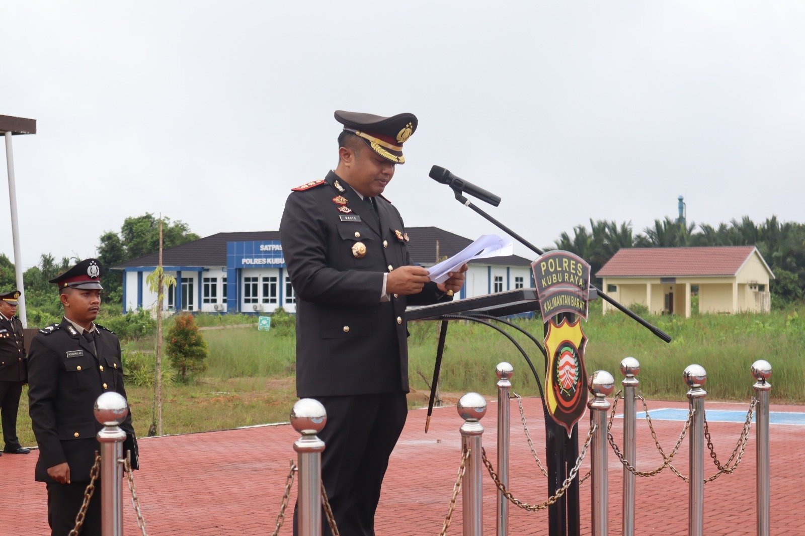 Kegiatan yang dimulai pukul 08.00 WIB ini dipimpin langsung oleh Kapolres Kubu Raya, AKBP Wahyu Jati Wibowo, S.I.K., S.H., M.H., selaku Inspektur Upacara. Upacara tersebut diikuti oleh jajaran anggota Polres Kubu Raya serta perwakilan unsur masyarakat.
