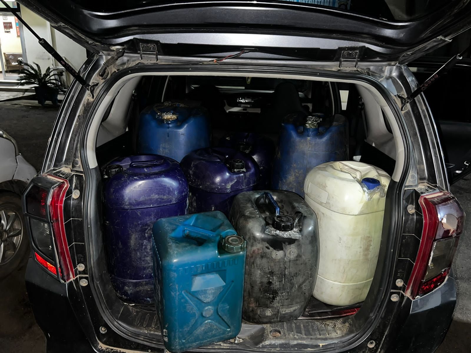 Selain pelaku, petugas juga menyita sejumlah barang bukti, yaitu enam jerigen berukuran 35 liter, dua jerigen berukuran 70 liter yang berisi BBM petralite, satu unit mobil Daihatsu Sigra warna Abu-Abu Metalik beserta surat tanda nomor kendaraan (STNK), serta satu buah terpal.