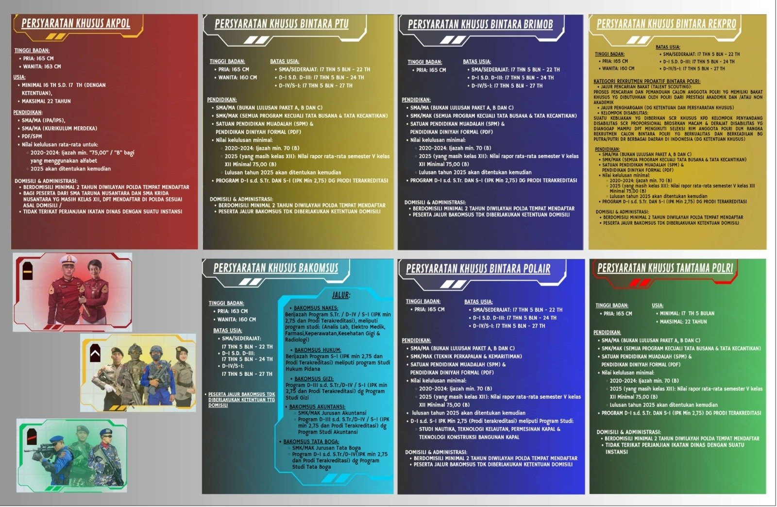 - Polri membuka beberapa jalur penerimaan yang mencakup berbagai bidang keahlian, di antaranya: