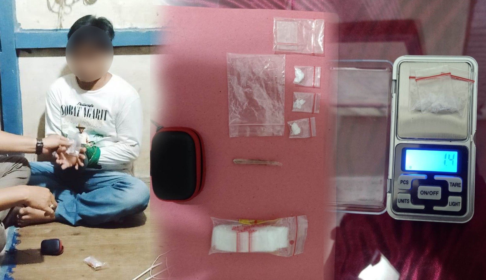 Dalam penggeledahan, petugas kembali menemukan barang bukti berupa tiga plastik bening berisi sabu dengan berat bruto 1,40 gram, satu pipa kaca, satu bungkus plastik berklip, serta satu dompet kecil merek Komodo berwarna hitam.