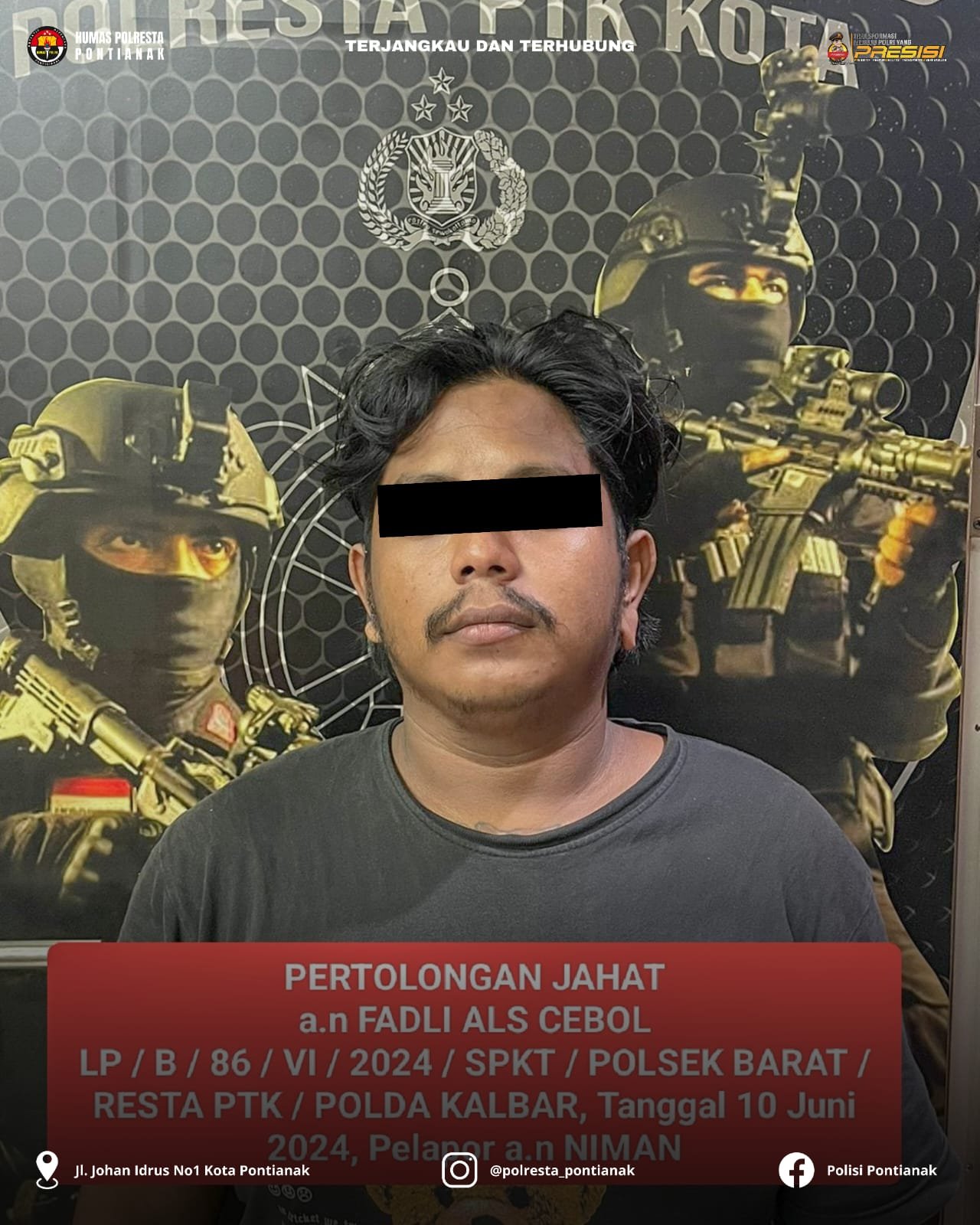 Kejadian pencurian tersebut dilakukan MH alias Uul di teras rumah korban di Jalan Bakri Gg. Lais Blok M3 No. 23 Perumnas 1 Kec. Pontianak Barat, pada Sabtu (29/6/24) sekitar pukul 18.15 WIB