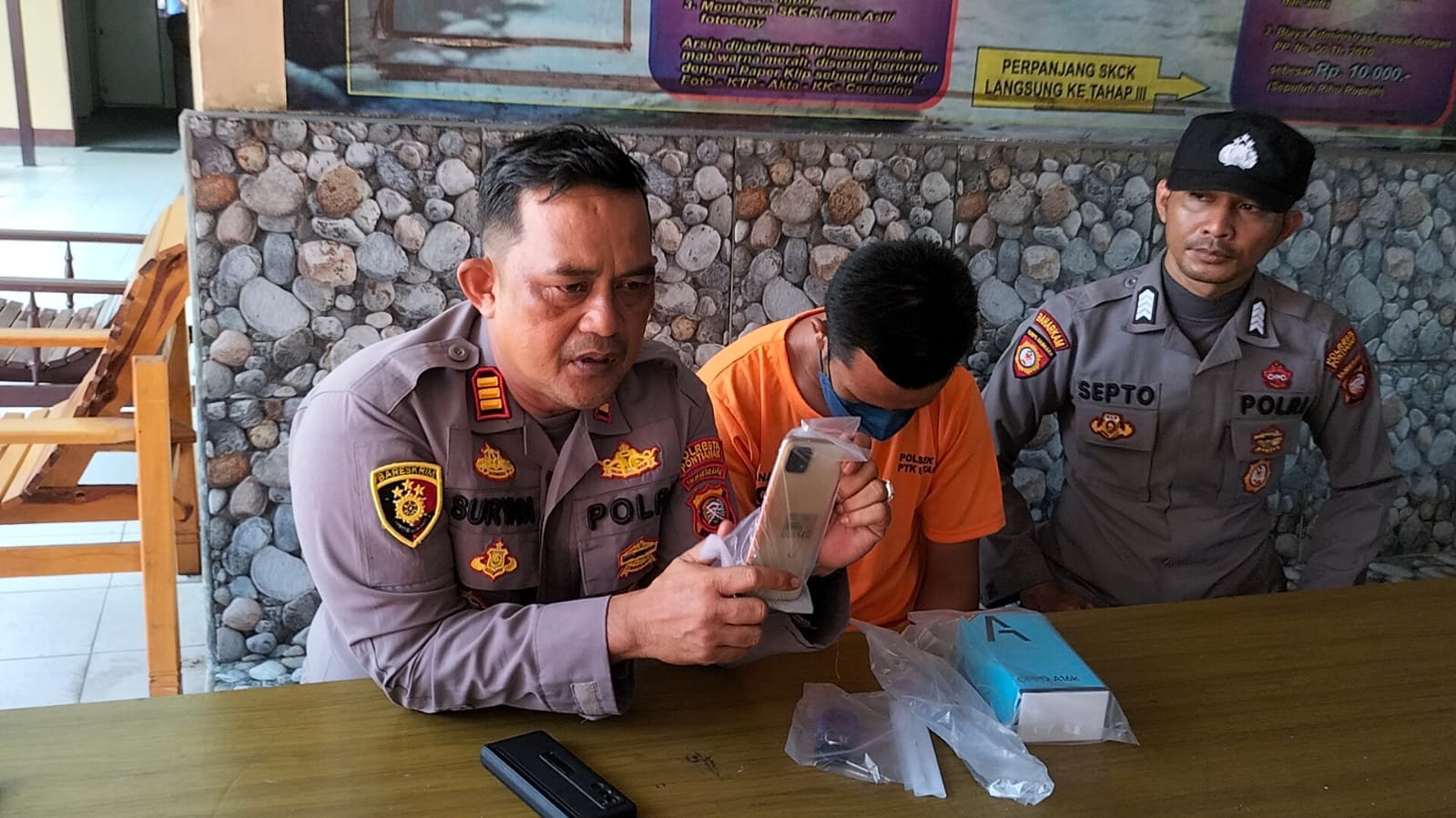 Suryadi menuturkan dari keterangan pelaku saat itu pelaku datang ke toko tersebut untuk membeli pulsa dan dilayani oleh korban,saat korban sedang menerima telepon,datang niat pelaku untuk merampas telepon genggam milik korban dengan mengancam menggunakan pisau yang dibawanya,setelah berhasil merampas Handphone korban,pelaku melarikan diri menggunakan sepeda motor miliknya.