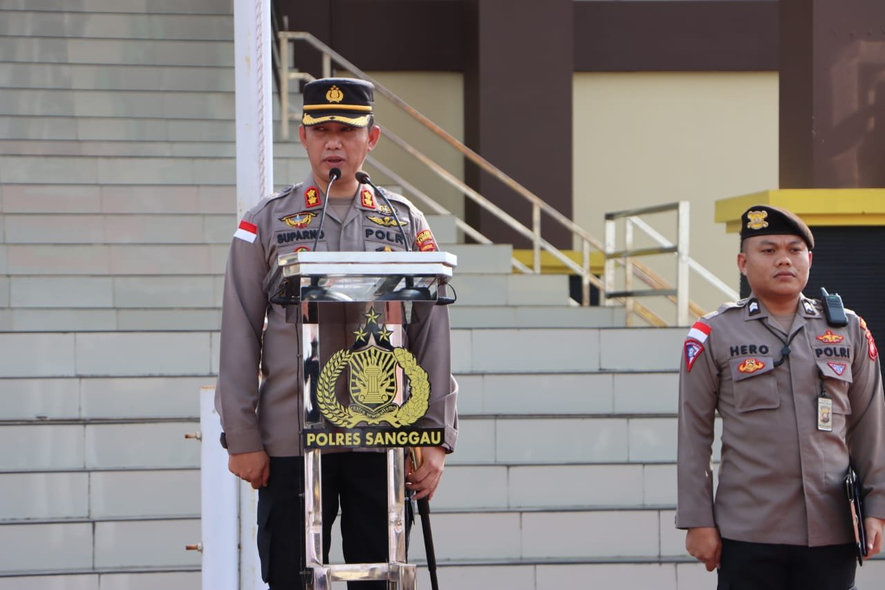 PONTIANAK MEDIA.CO.ID, Sanggau – Kapolres Sanggau AKBP Suparno Agus Candra Kusumah, SH, S.I.K pimpin apel pemberian penghargaan personil berprestasi di halaman Mapolres Sanggau.