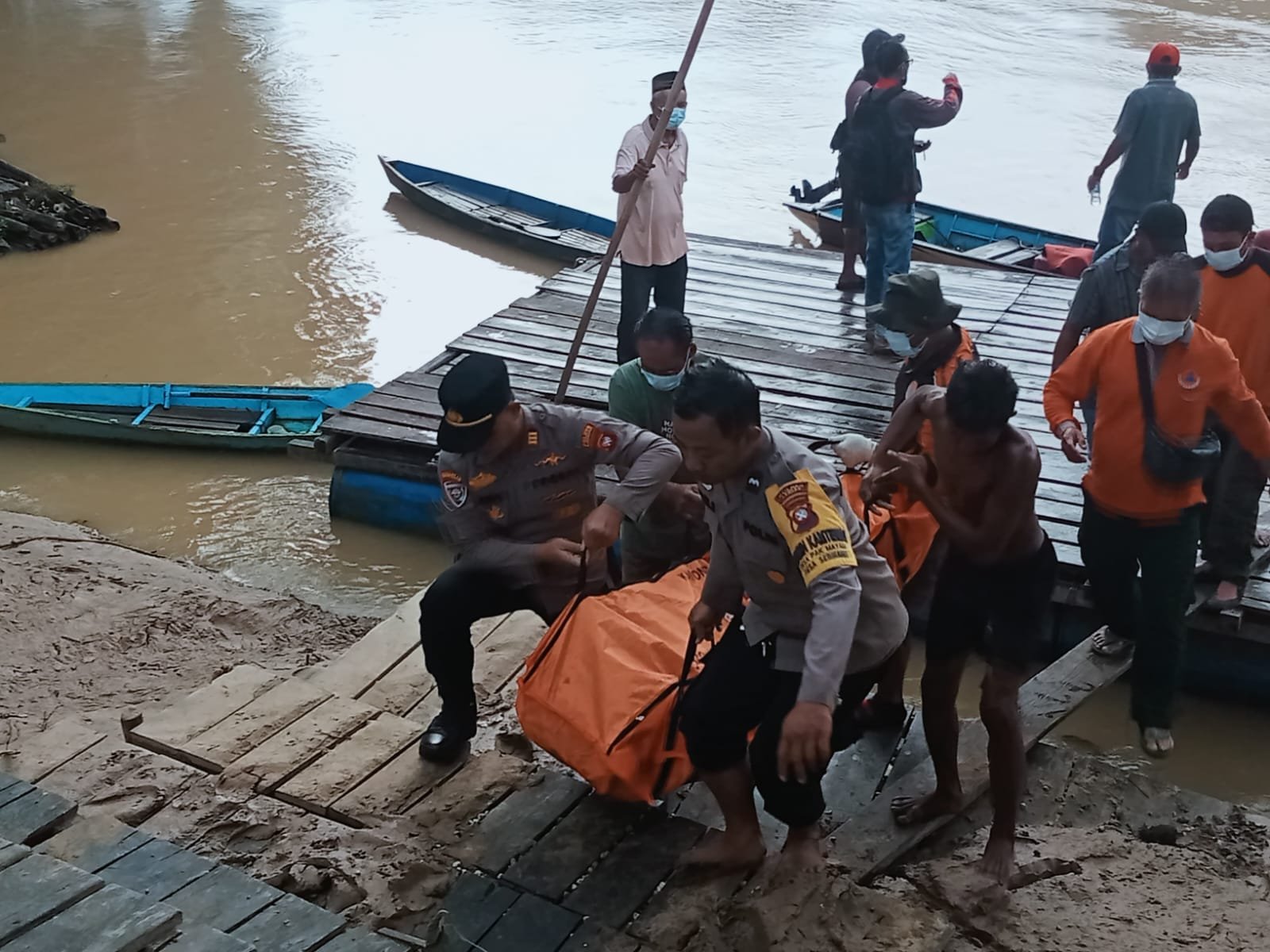 “Sekitar pukul 15.00 wib personil Polsek Ngabang beserta masyarakat sekitar melakukan evakuasi Jenazah dengan menggunakan perahu milik masyarakat” Ungkap Kapolsek