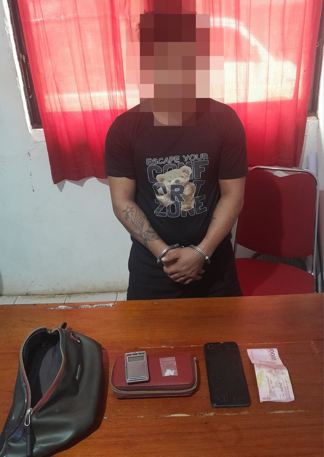Dilanjutkan Kapolsek Marau, pada saat dilakukan penggeledahan badan terhadap pelaku yang disaksikan oleh perangkat desa setempat, petugas mendapati didalam tas yang dibawa pelaku, sejumlah barang bukti berupa 1 klip plastik berisi serbuk putih yang di duga sabu, 1 buah sendok takar dan 1 buah timbangan.