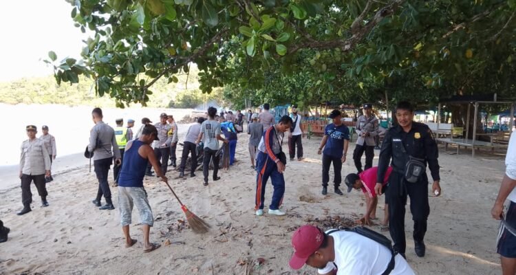 Polres Kayong Utara Bersama Masyarakat Kerja Bakti Bersihkan Pantai Pulau Datok
