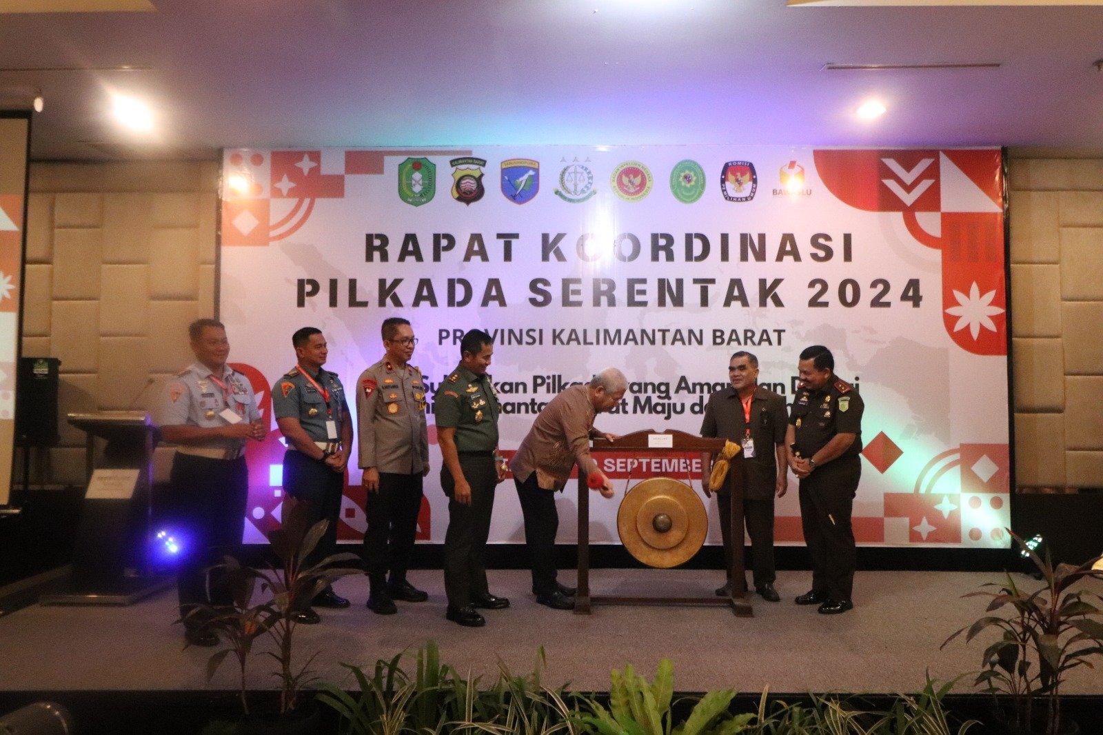 PONTIANAKMEDIA.ID, Pontianak, 19 September 2024 – Polda Kalimantan Barat menggelar Rapat Koordinasi hari ini, untuk membahas kesiapan pengamanan Pemilihan Kepala Daerah (Pilkada) Serentak tahun 2024. Kegiatan penting ini dihadiri oleh sejumlah tokoh kunci, termasuk Penjabat (Pj.) Gubernur Kalimantan Barat, seluruh unsur Forkopimda Kalbar, serta para pimpinan instansi di berbagai tingkatan di wilayah Kalimantan Barat, kegiatan Rakor dilaksanakan di Hotel Mercure Pontianak (19/09)